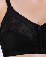 Non Wire Full Cup Half Lace Minimizer Bra Black