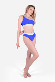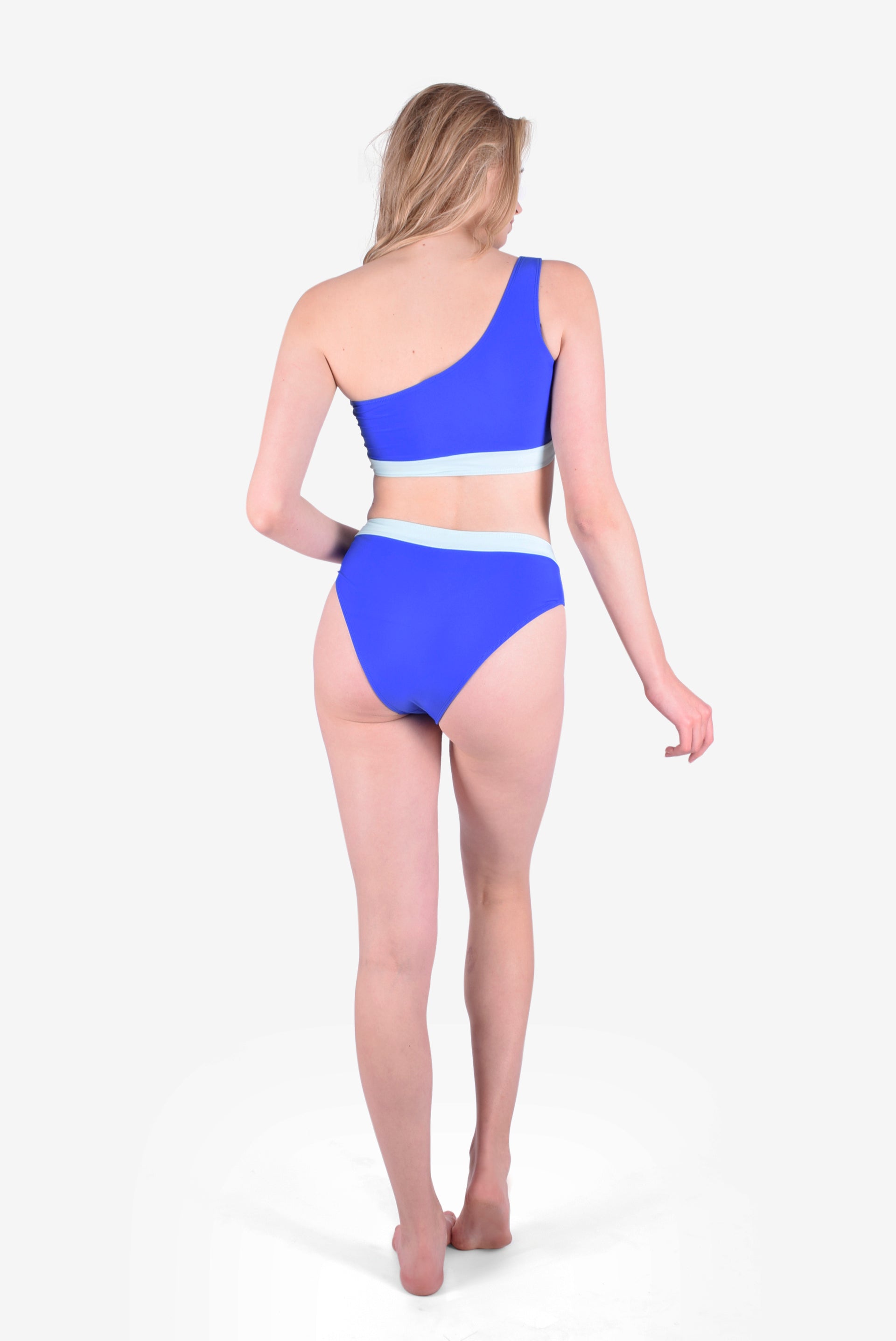 Women's Summer Swimwear One Shoulder Bikini Two Pieces - Blue